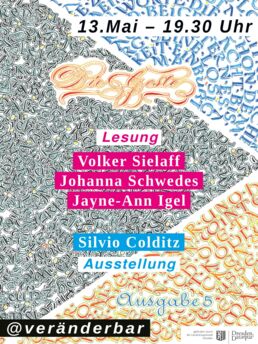 Hinweis: Alle Veranstaltungen des artderkultur e.V., die in der VERÄNDERBAR stattfinden, sind P 18 (und auch die Begleitung einer volljährigen Person ändert leider nichts daran)!